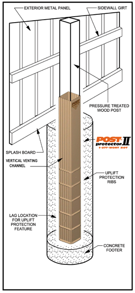 • Post uplift protection - Post Frame sizes include stainless steel hardware